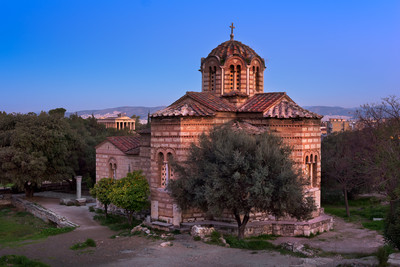 Church of the Holy Apostles and Temple of Hephaestus in Agora in the Morning, Athens, Greece